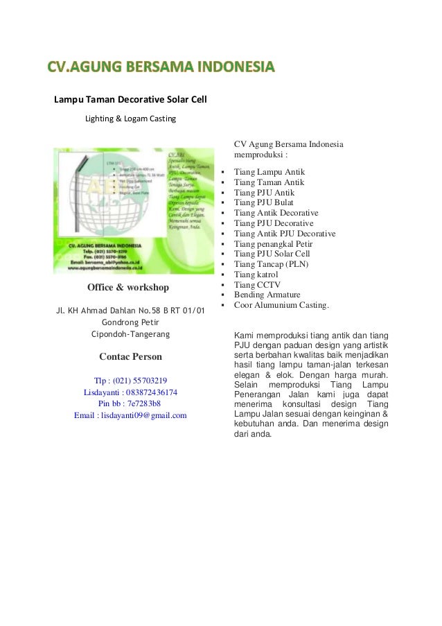 1.BROSUR dan KATALOG Tiang Lampu Penerangan Jalan Umum (PJU)