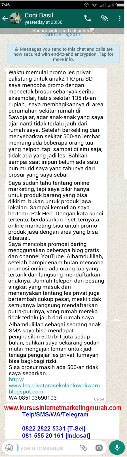 Testimoni Anak SMA Privat Internet Marketing Murah Privat Bisnis Online Kursus Internet Marketing Murah