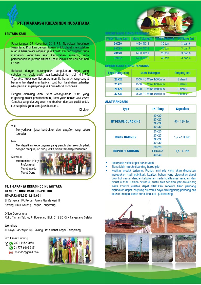 PT Tigaraksa Kreasindo Nusantara: BROSUR MINIPILE TIANG PACANG