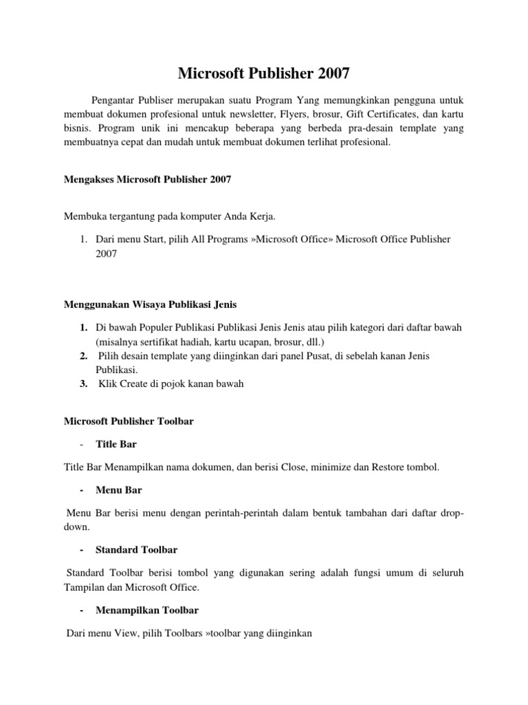 adalah Microsoft Office Publisher 2007 yang terintegrasi dengan Microsoft | Course Hero