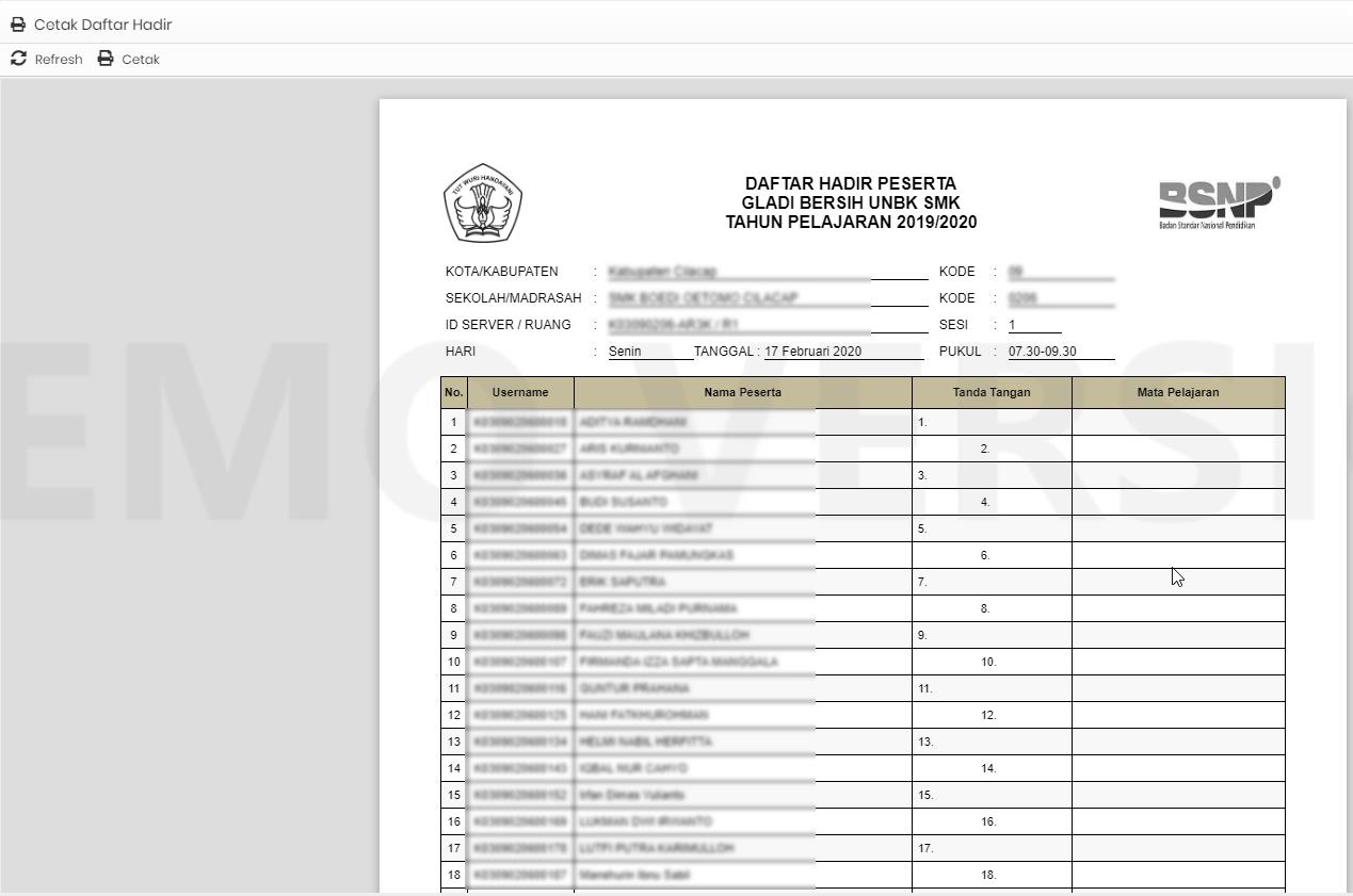 Langkah-Langkah Cetak Daftar Hadir Gladi Bersih UNBK 2020 - Sinau-thewe.com
