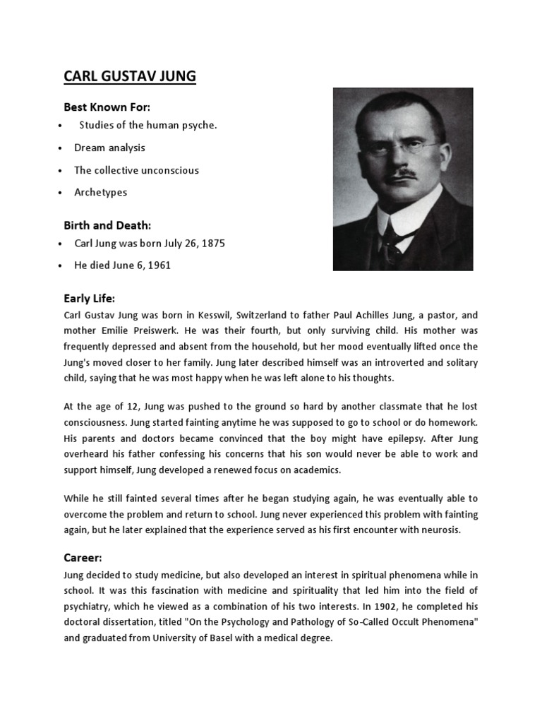 Carl Gustav Jung: a Brief Biography | Carl jung, Psychoanalysis, Gustav