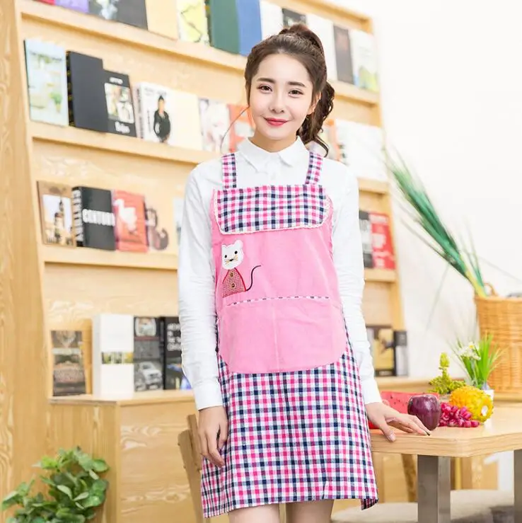 New Fashion Kartun Hewan Katun Celemek Kain Rumah Bordir Korea Bahu Tali Apron Kitchen Apron Dengan Saku Avental|cloth apron|aprons with pocketsapron fashion - AliExpress