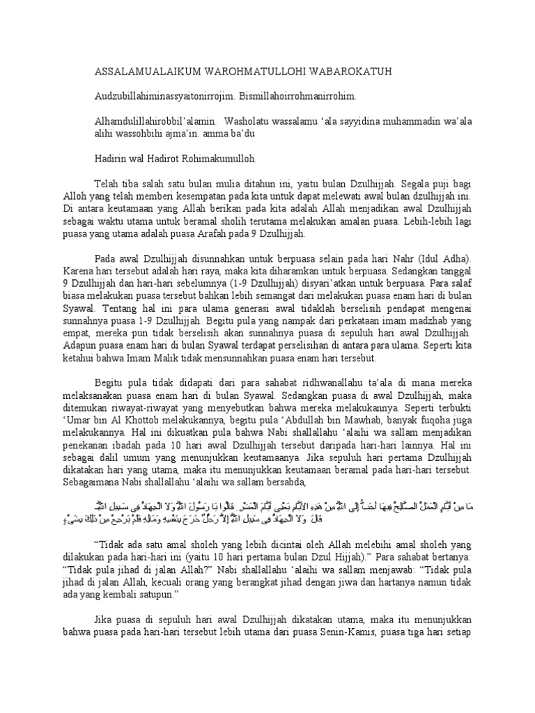 Khutbah Jumat Tentang Amalan Bulan Dzulhijjah | Ardinur.com