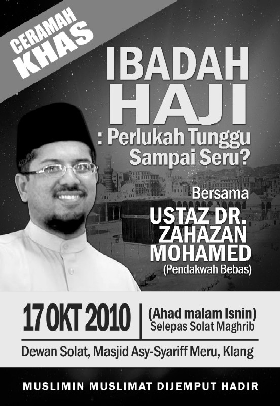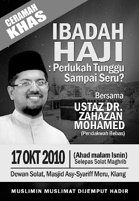 Mencari Sinar ILAHI…: Ceramah Khas “Ibadah Haji : Perlukah Tunggu Sampai Seru?” Oleh Ustaz Zahazan Mohamed