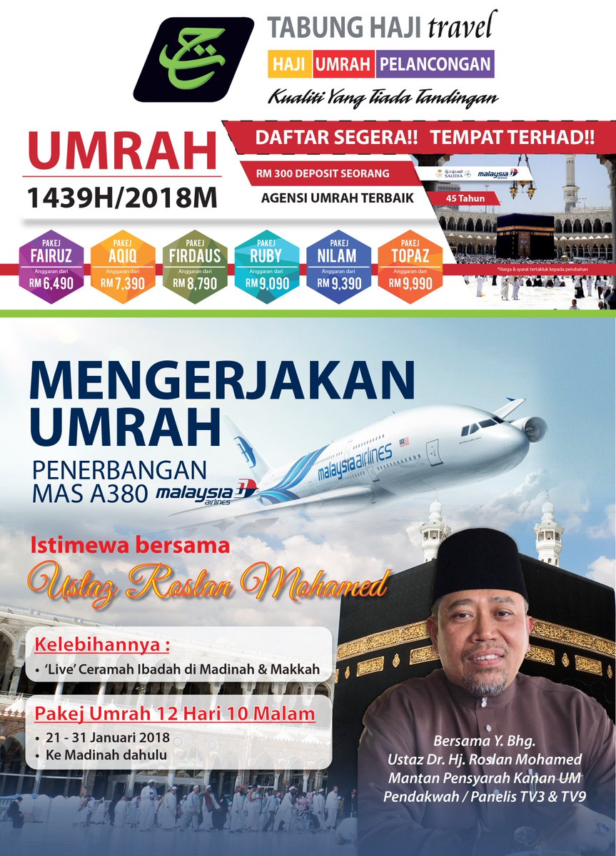 Tabung Haji Travel on Twitter: “Sertai “Live” Ceramah Ibadah d Tanah Suci b’sma @UstRoslan Mohamed Pkj Umrah 12 Hari 10 Malam Bermula 21-31 Jan 2018 https://t.co/ABZfCtLOzd Cepat! Hubungi @TabungHajiTravel Sekarang 0192897624 0326880000 #