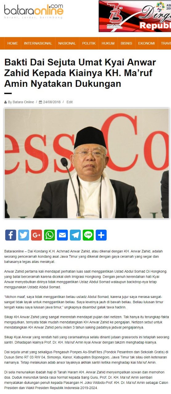 Novira on Twitter: “Dai kondang Kyai Anwar Zahid nyatakan dukungannya kepada KH. Ma’ruf Amin. #Pilpres2019 #Indonesia… "