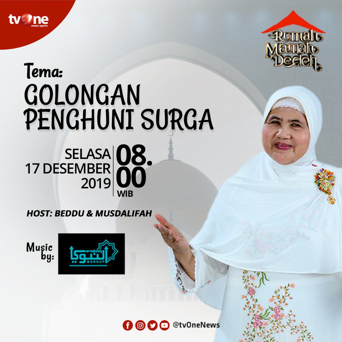 tvOneNews on Twitter: “Jangan lewatkan ceramah Rumah Mamah Dedeh dengan tema: “Golongan Penghuni Surga” Selasa, 17 Desember 2019 jam 08.00 WIB hanya di tvOne & streaming tvOne connect. #RumahMamahDedeh #MamahDedehditvOne… https://t.co/Ux8q1PXDO1"