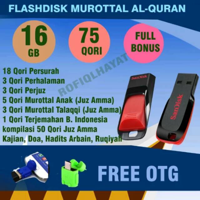 Paket terlengkap flashdisk murottal 75 Qori bonus ceramah, hadits arbain, ruqyah, zikir pagi petang | Shopee Indonesia