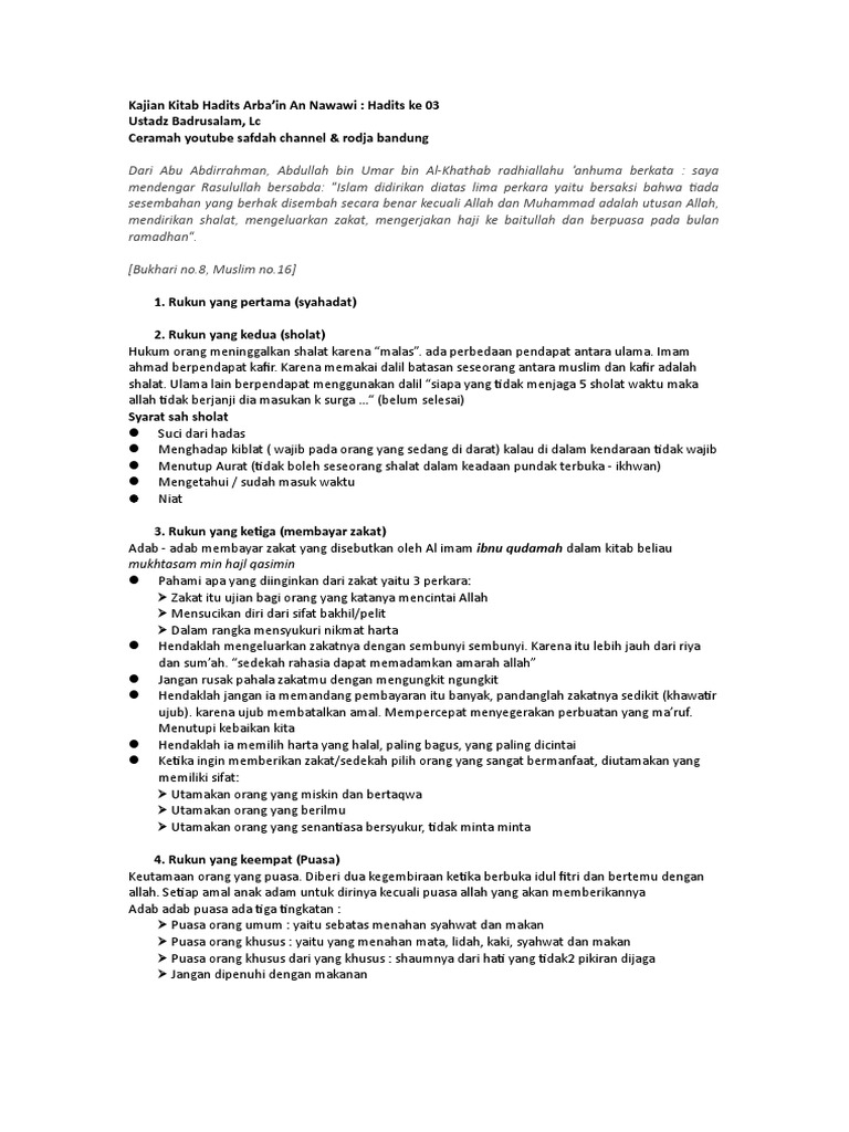 Catatan Kajian Kitab Hadits Arbain Nawawi (Ustadz Abu Yahya …