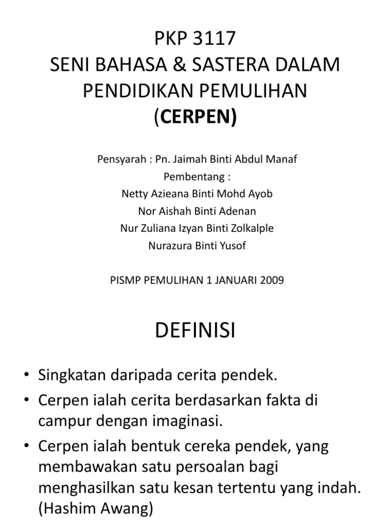 mimbar kata: Bimbingan Karya Penulisan Cerpen