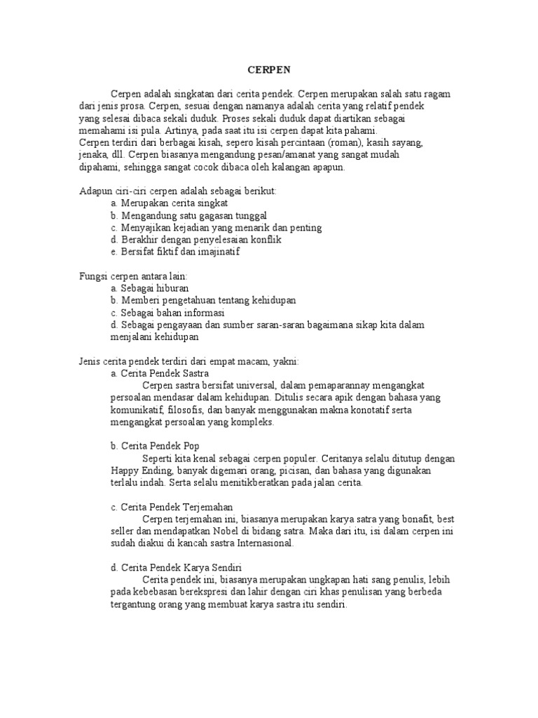 Pengertian Cerpen - Cerpen adalah karangan pendek yang …