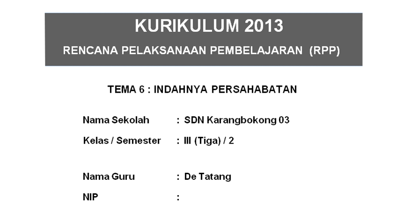 Kelas 03 SD Tematik 6 Indahnya Persahabatan Siswa