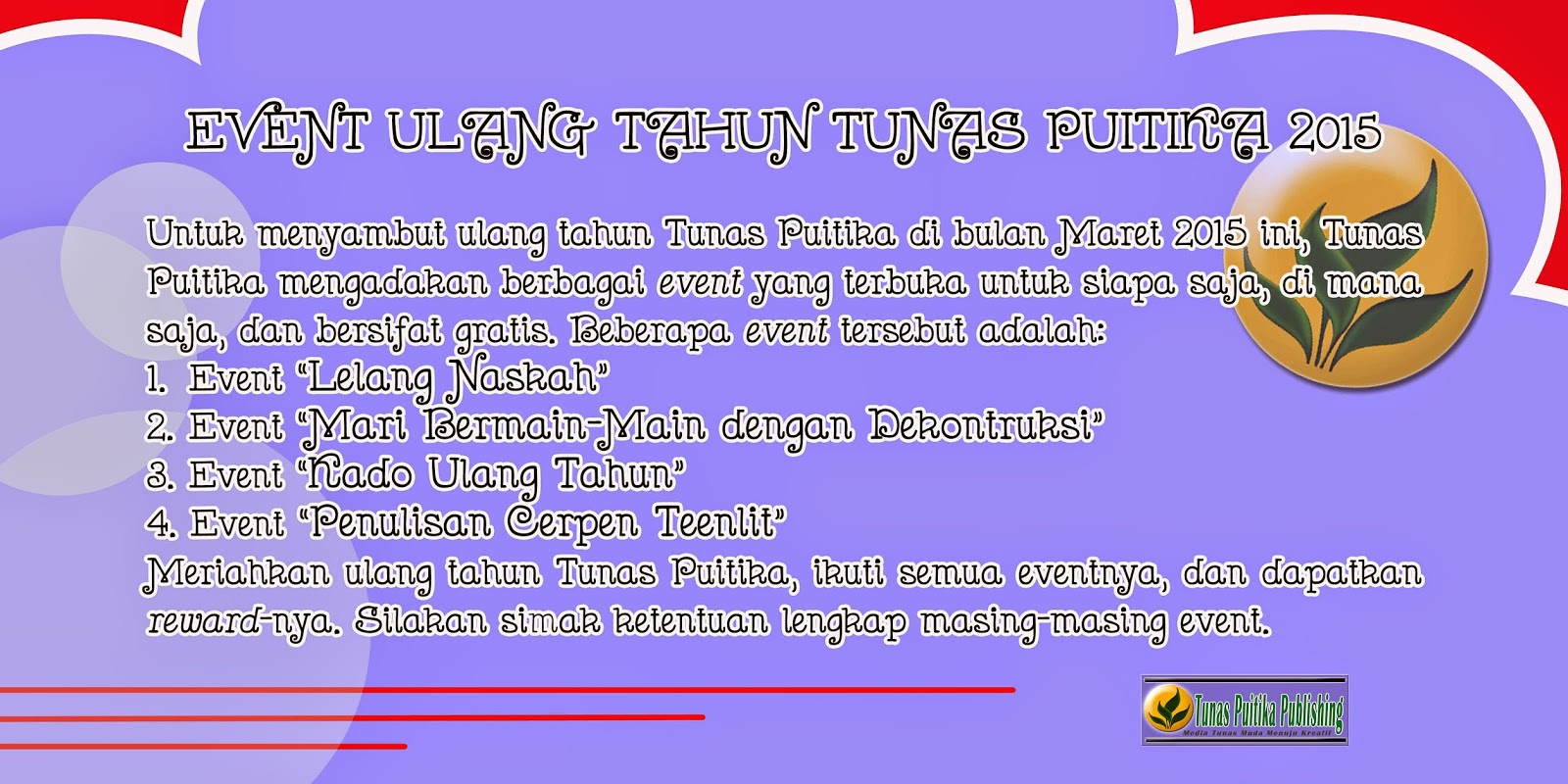Tunas Puitika Publishing: Event “Penulisan Cerpen Teenlit” untuk Siswa SMP-SMA & UMUM