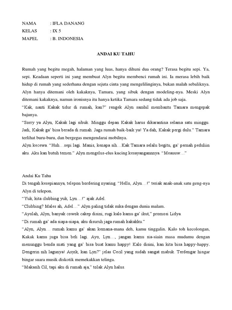 Cerpen Andai Ku Tahu