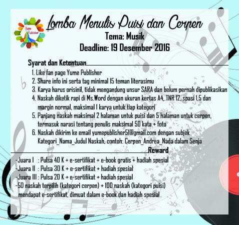 Samudrawan Gallery: Info Lomba Menulis Puisi dan Cerpen Tema Musik DL. 19 Desember 2016