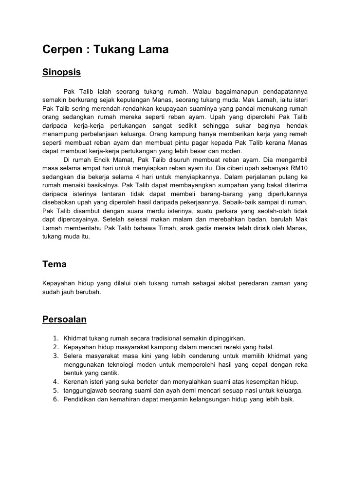Cerpen: Tukang Lama: Sinopsis
