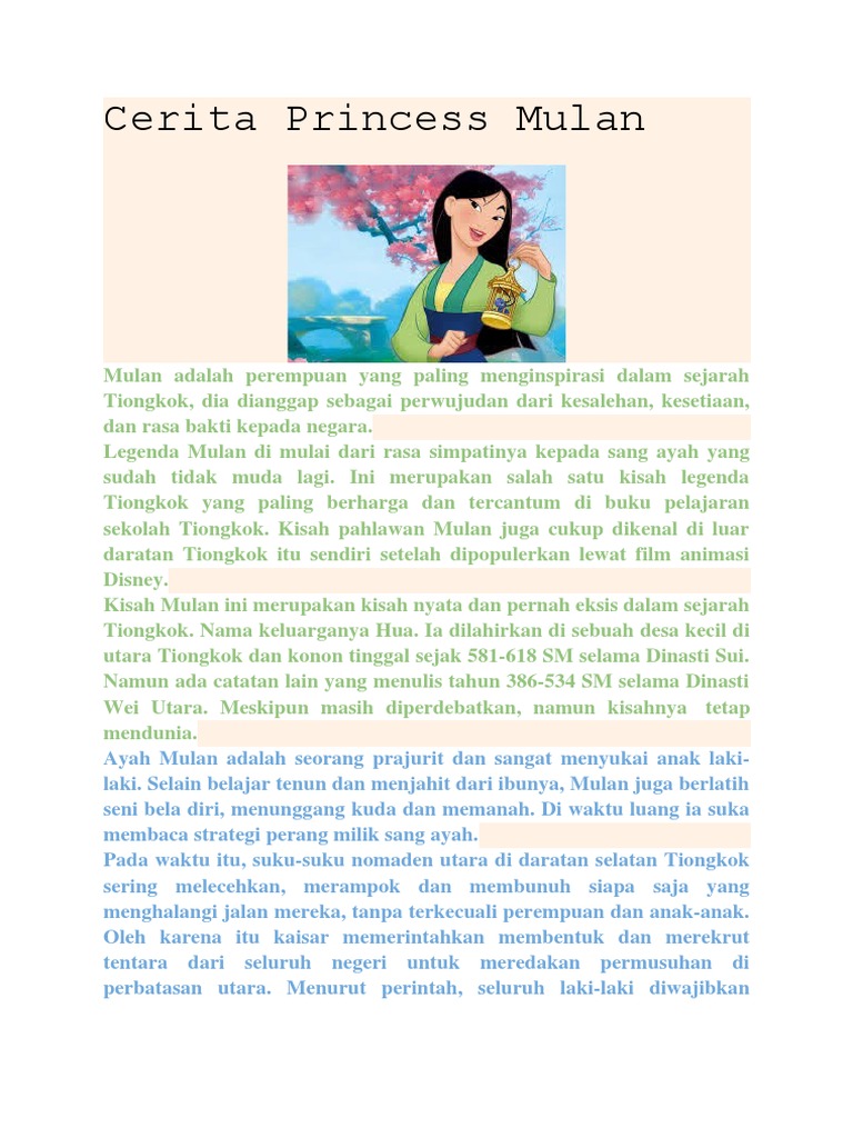 Cerita Princess Mulan
