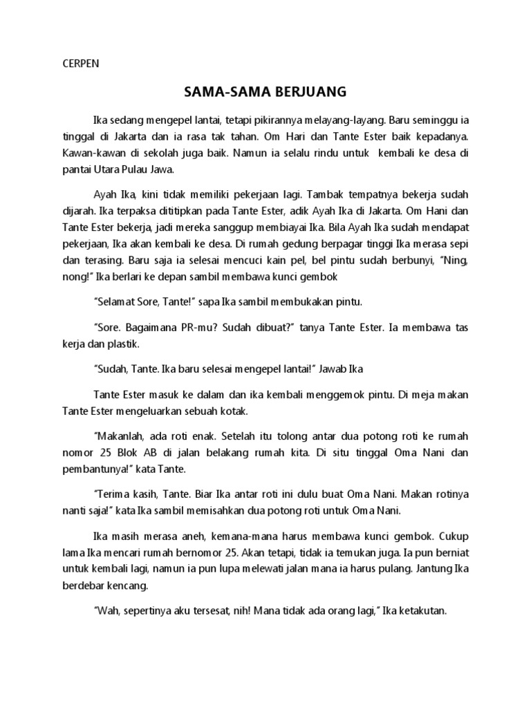 mana hasil analisis dari cerpen sama sama berjuang - Brainly.co.id