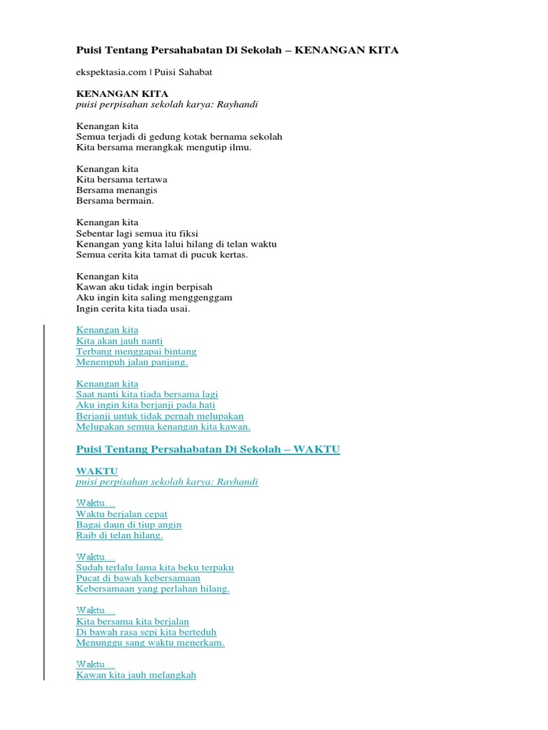 Puisi Tentang Persahabatan Di Sekolah