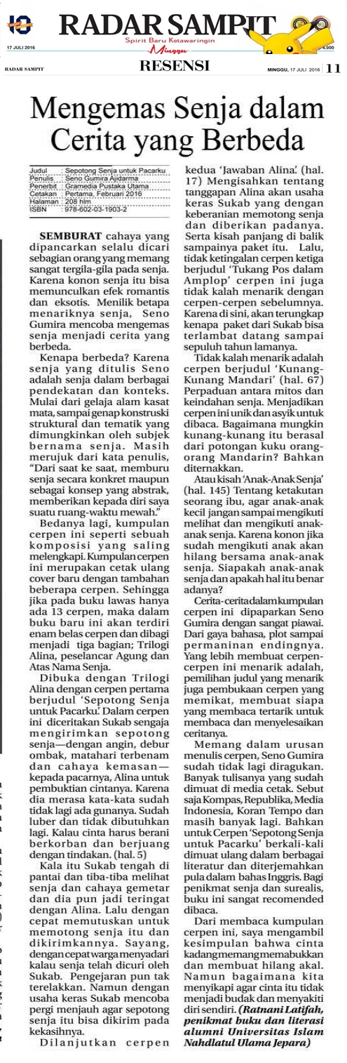 Coretan Kazuhana El Ratna Mida (Ratnani Latifah) : [Resensi] Mengemas Senja dalam Cerita yang Berbeda