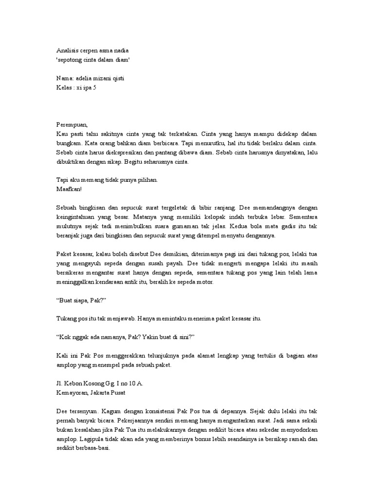 DOC) Cerpen Sepotong Cinta dalam Diam | Helmiya Helmiya - Academia.edu