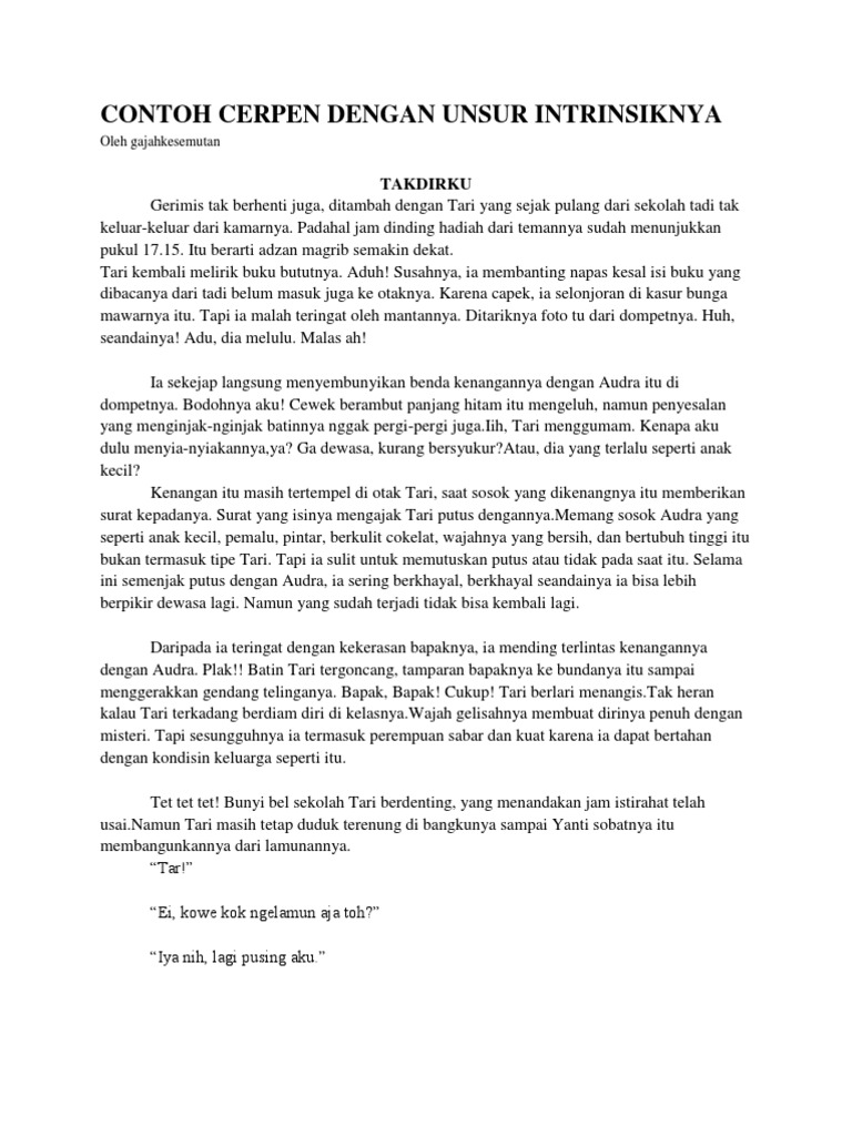 DOC) 4 Contoh Cerpen Beserta Unsur Intrinsik dan Ekstrinsiknya | Dian Rahmawati - Academia.edu