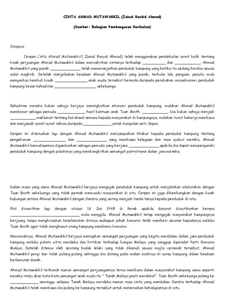Laman Bahasa Melayu SPM: NOTA PEMBENTANGAN KOMSAS KELAS 5 SAINS - CERPEN CINTA AHMAD MUTAWAKKIL (TARIKH PEMBENTANGAN JUMAAT -19 JANUARI 2018)