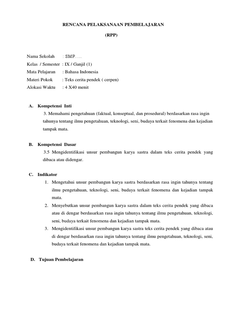 PDF) Contoh RPP Teks Cerita Pendek SMP Kelas VII | isnaini shaleh - Academia.edu