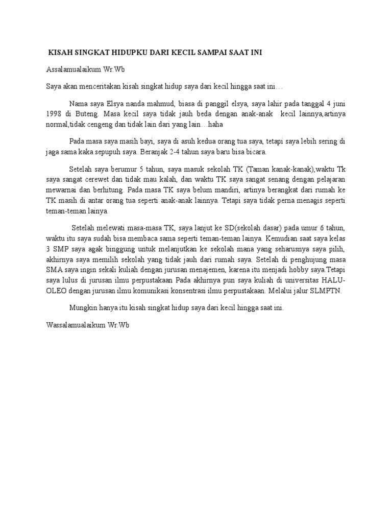 Kisah Singkat Hidupku Dari Kecil Sampai Saat Ini