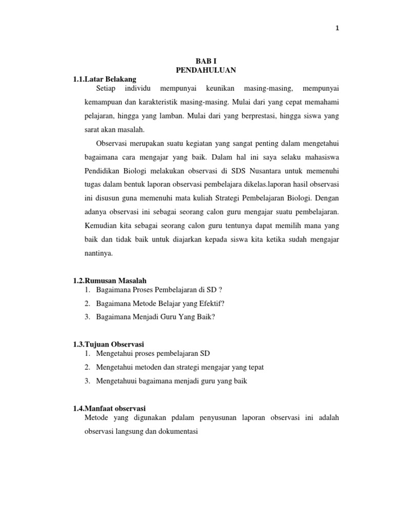 Contoh Laporan Hasil Observasi Research Papers - Academia.edu