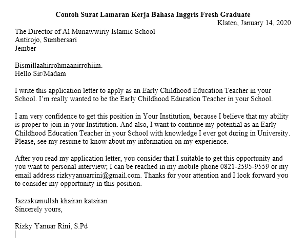 contoh cover letter bahasa inggris untuk fresh graduate admin …