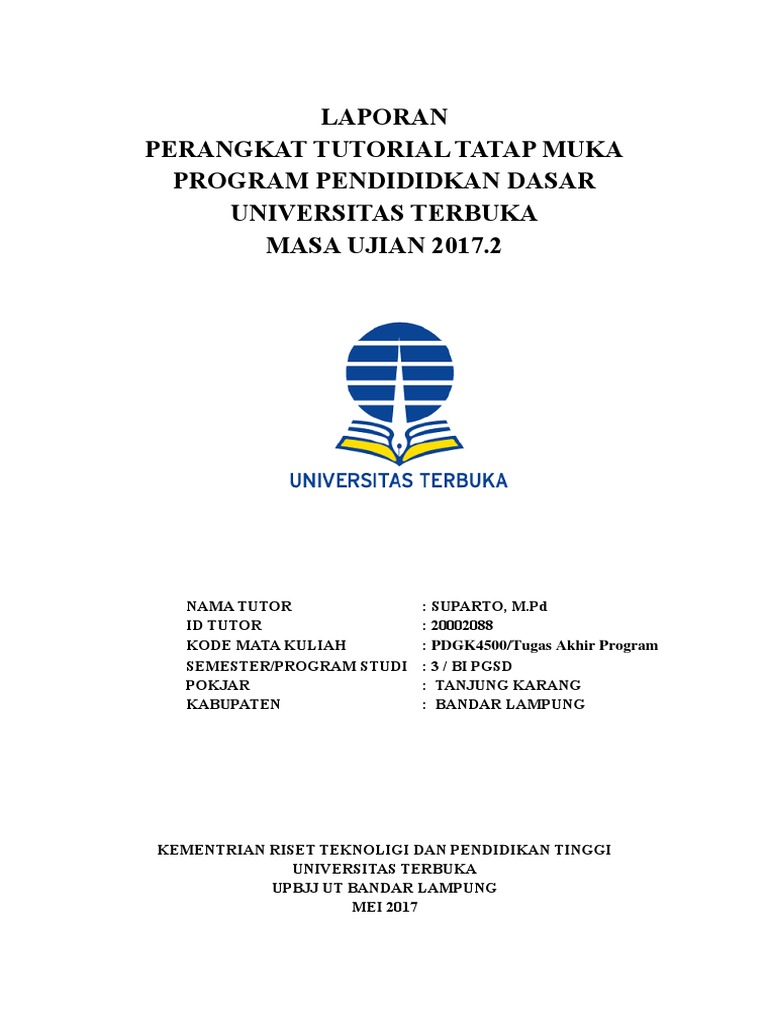 Contoh Cover Laporan Pkp Pgsd Ut - Kumpulan Contoh Makalah Doc Lengkap