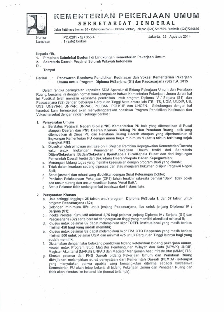 Nomor : 4998/P.01/08/2012 6 Agustus 2012 Lamp. : 1 (satu) berkas Perihal : Seleksi Program Beasiswa Pusbindiklatren Bappenas Tah