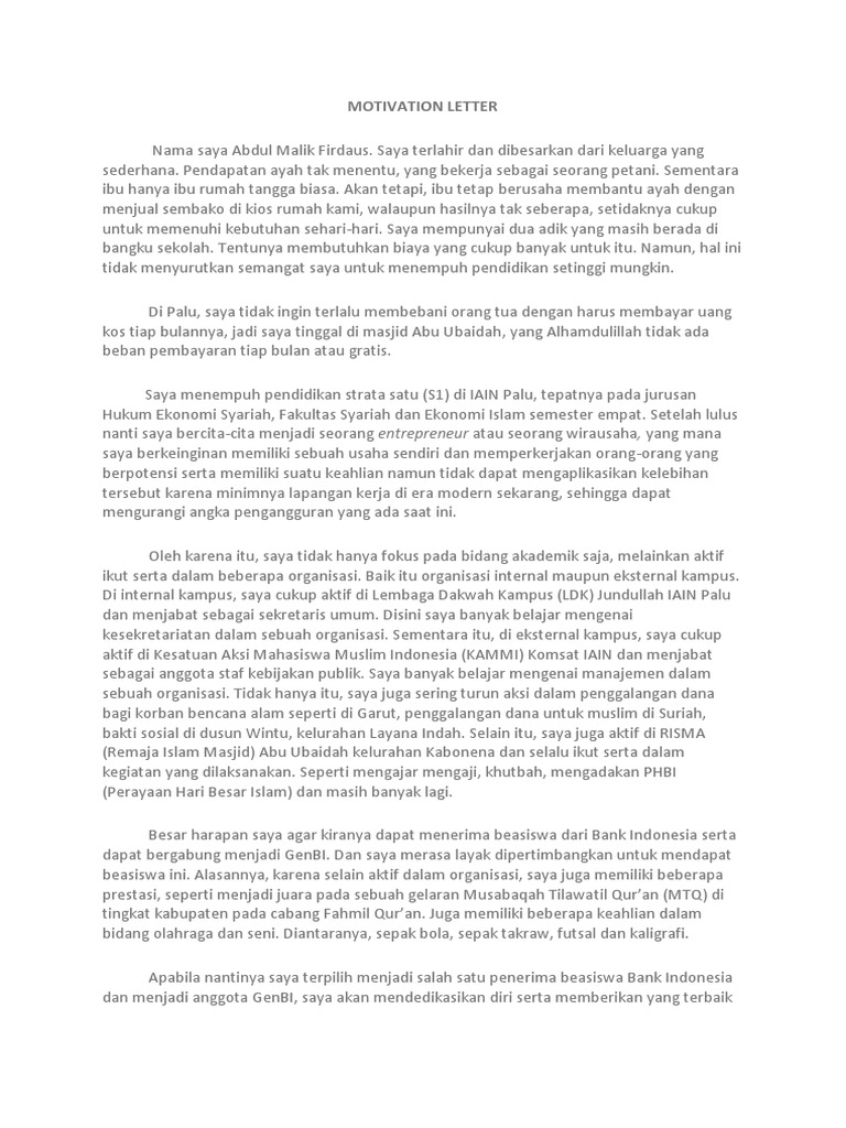 Contoh Motivation Letter Bahasa Indonesia Untuk Beasiswa Bank …