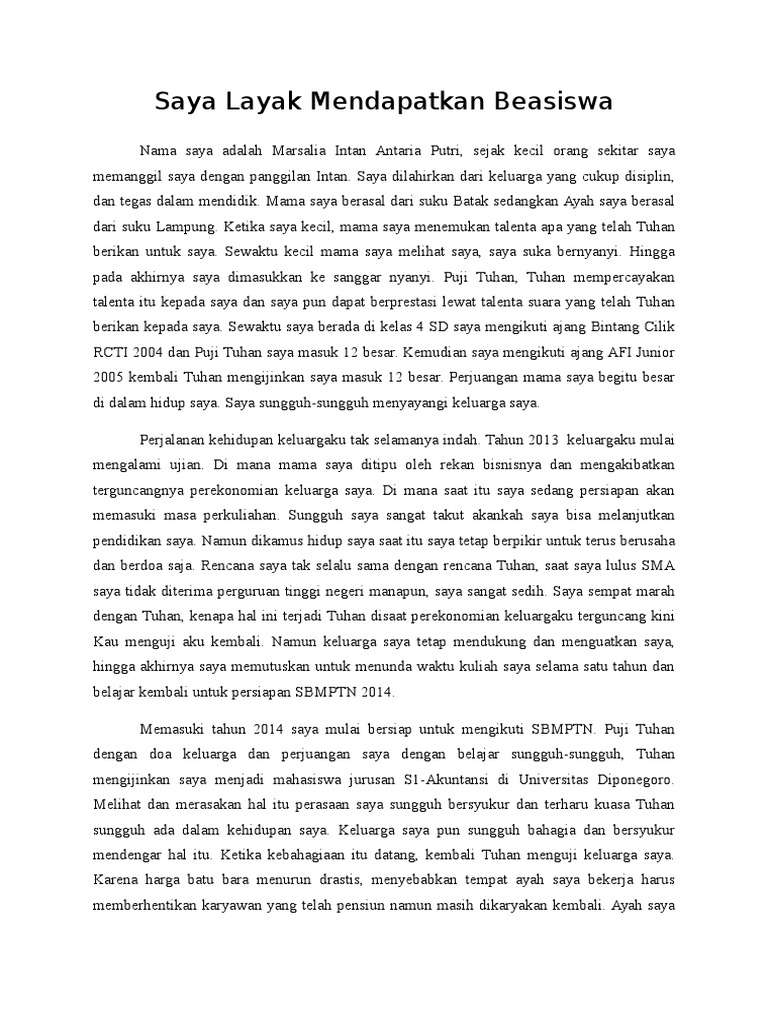 DOC) Mengapa Saya Layak Mendapatkan Beasiswa | Dream R - Academia.edu