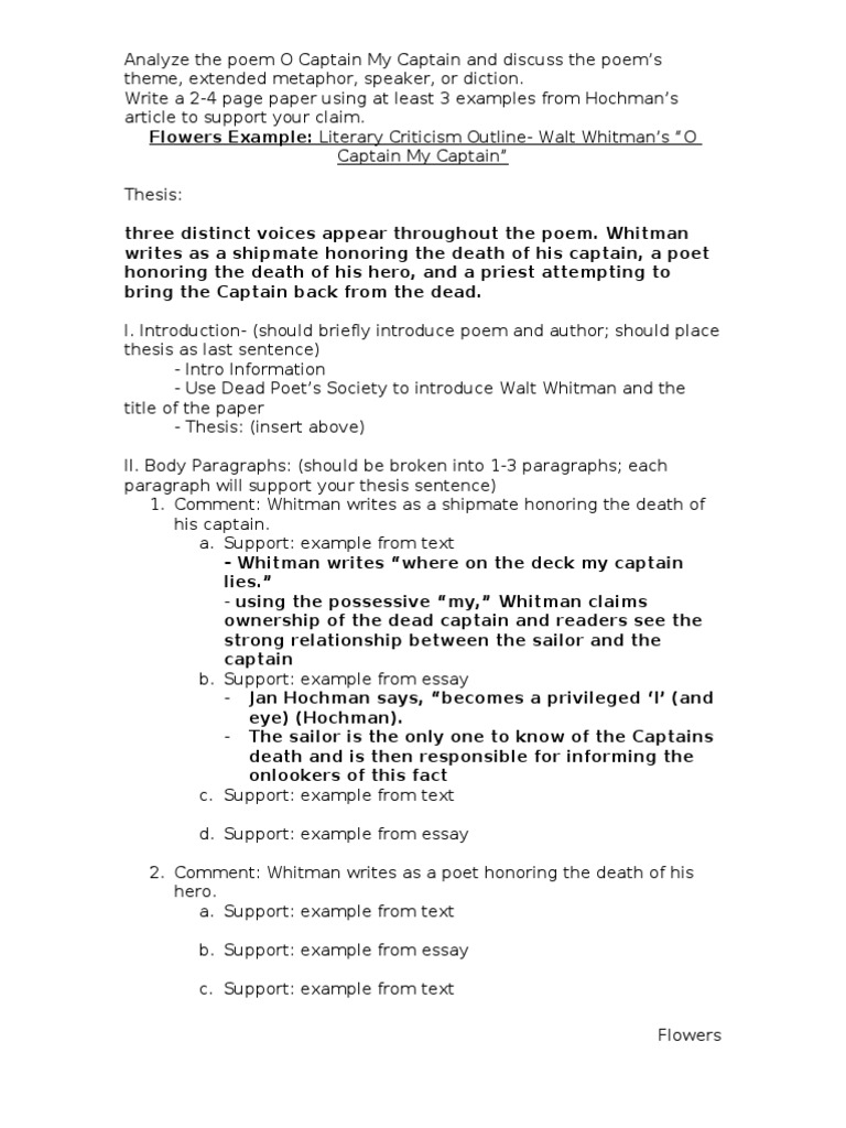 Example- Literary Criticism Outline | Walt Whitman | Poetry