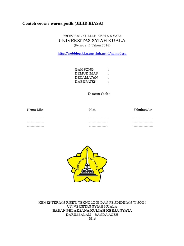 Contoh Lembar Pengesahan Dan Cover PROPOSAL KKN Periode 11_2016