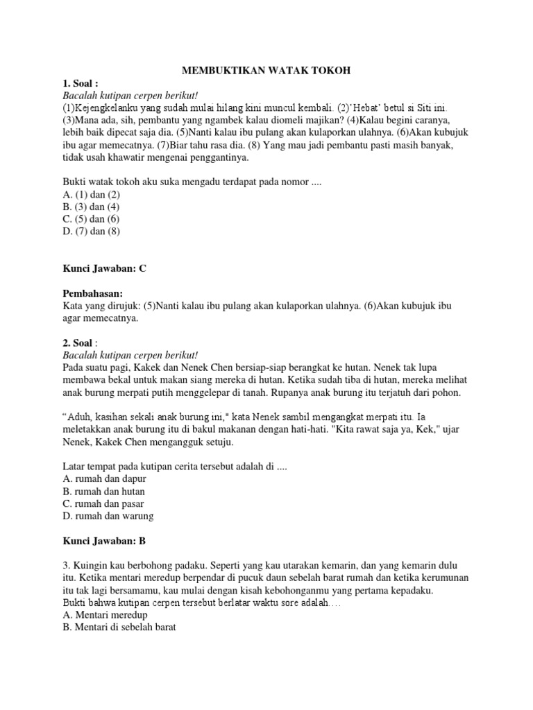 SOAL UN DAN PEMBAHASAN MENENTUKAN WATAK TOKOH CERITA ~ ZUHRI INDONESIA