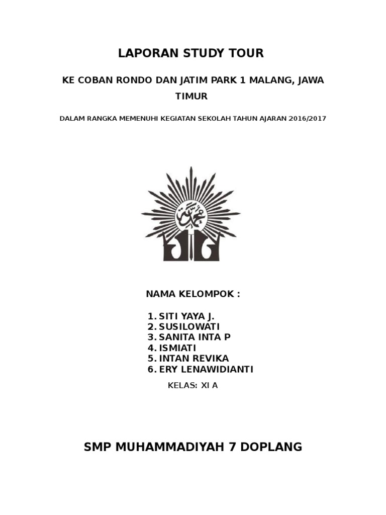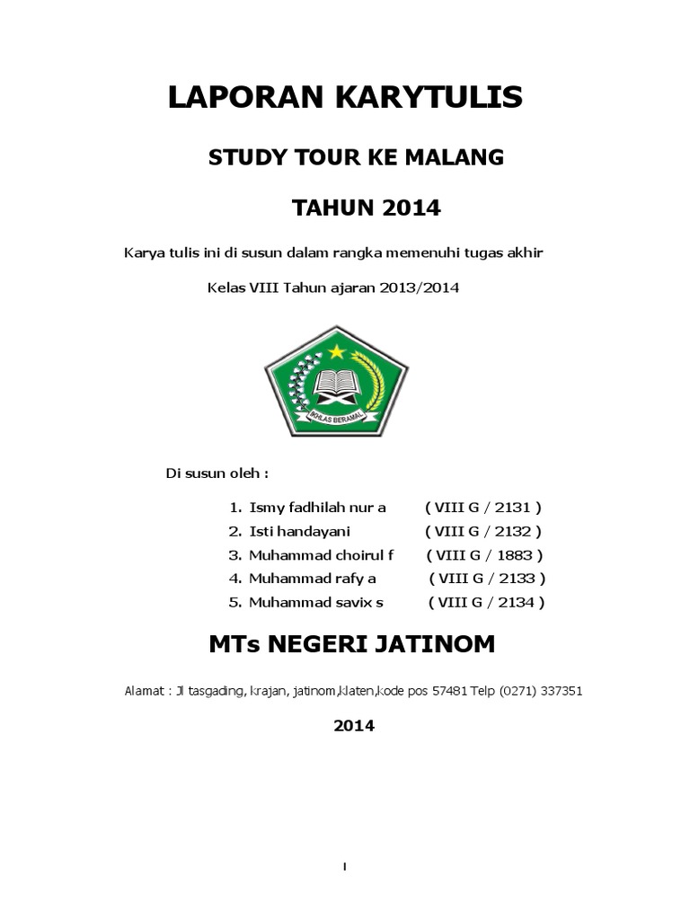 DOC) LAPORAN KARYA TULIS STUDY WISATA KE MALANG JAWA TIMUR Disusun …