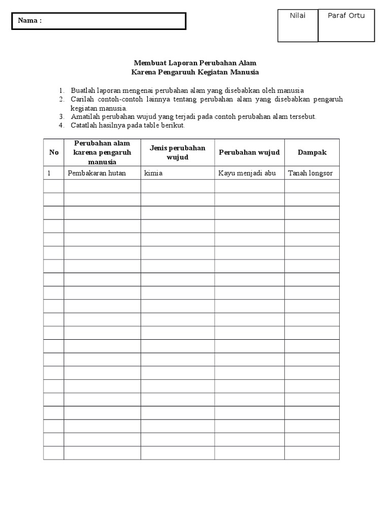 Carilah informasi dan data tentang contoh perubahan perubahan alam yang disebabkan karena aktivitas - Brainly.co.id