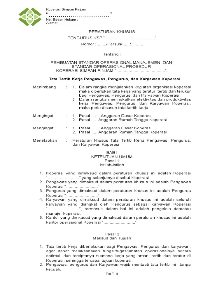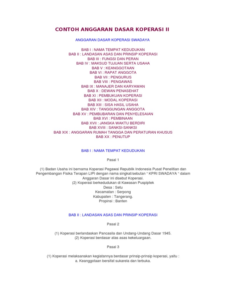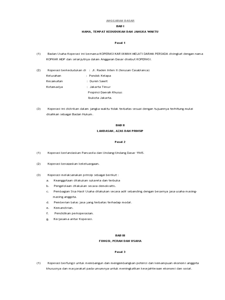 DOC) Contoh Anggaran Dasar Koperasi | Nur Haliza - Academia.edu