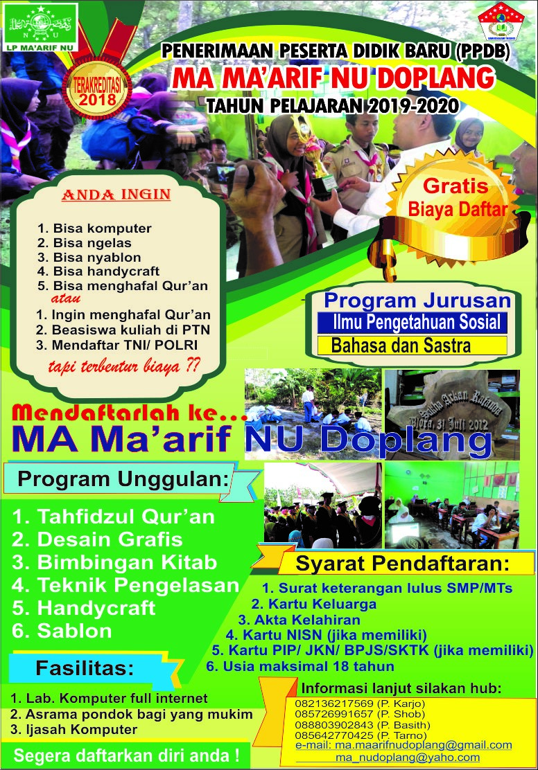 PENERIMAAN SISWA BARU MA MA’ARIF NU DOPLANG