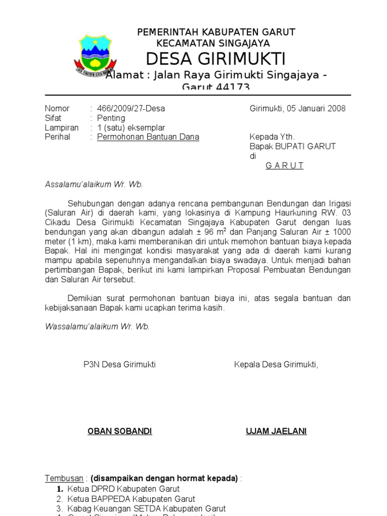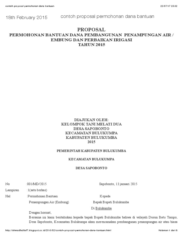 Contoh Proposal Permohonan Bantuan Perbaikan Saluran Air - Cute766