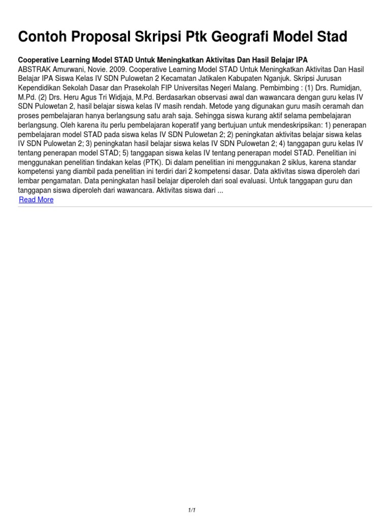 Contoh Proposal Skripsi Ptk Geografi Model Stad