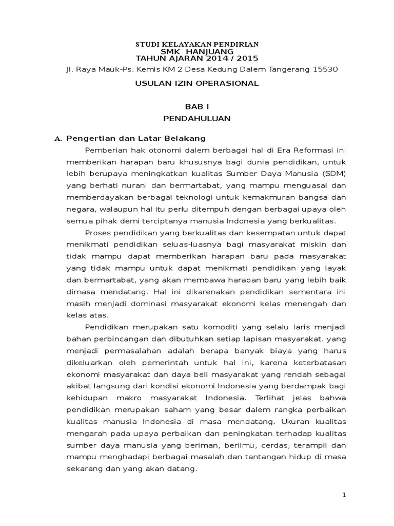 Contoh Proposal Pengajuan Ijin Operasional Pesantren