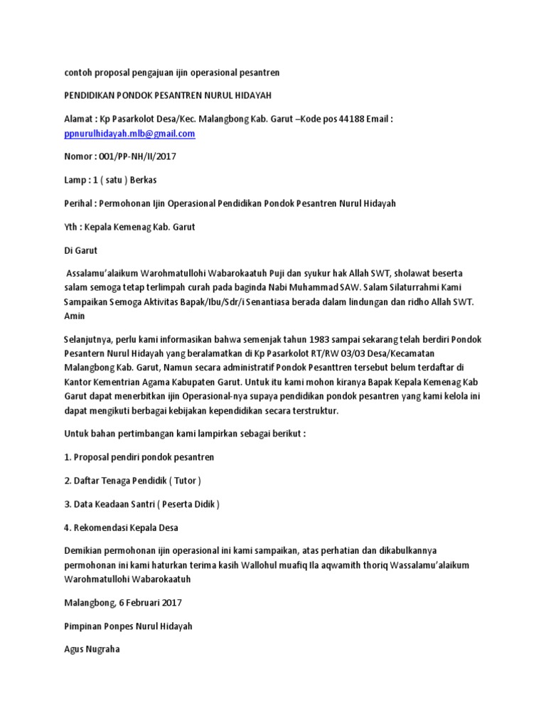 Contoh Proposal Ijin Operasional Pondok Pesantren - Barisan Contoh