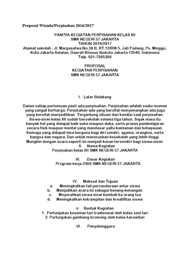 Contoh Proposal Perpisahan Sekolah - Rismax
