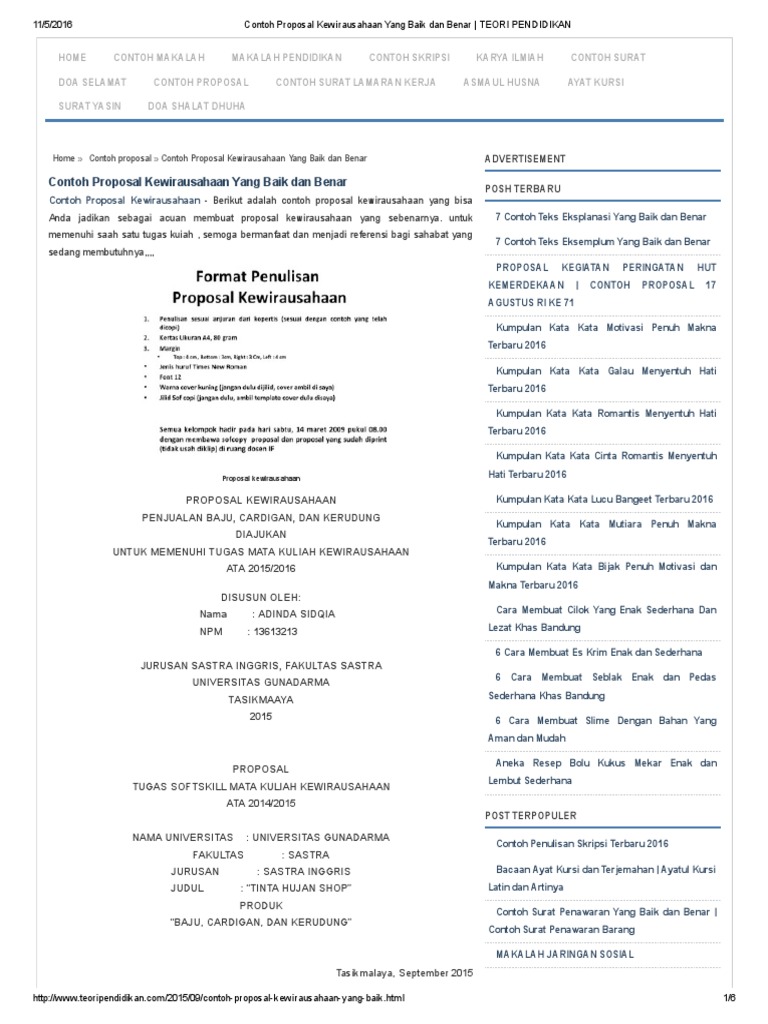 Contoh Proposal Kewirausahaan Yang Baik Dan Benar cari