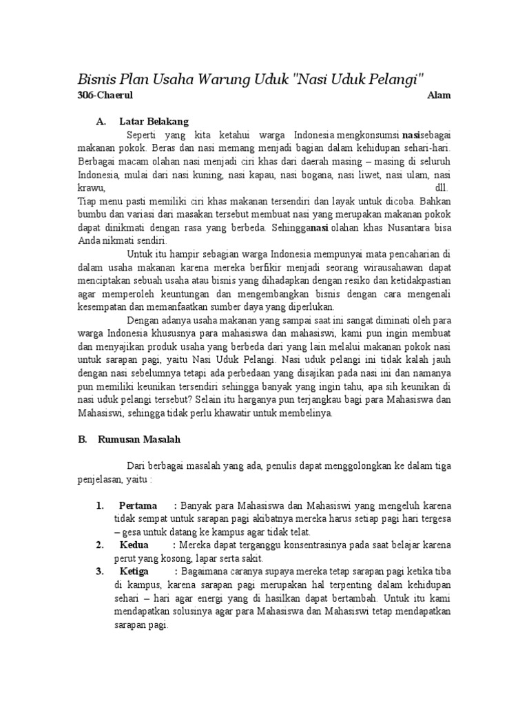 Contoh Bisnis Plan Nasi Uduk - Contoh Mik